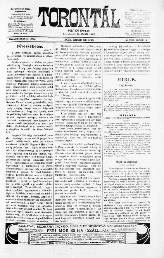 Torontál, 39. évf. 1910. június 8. 128. sz.