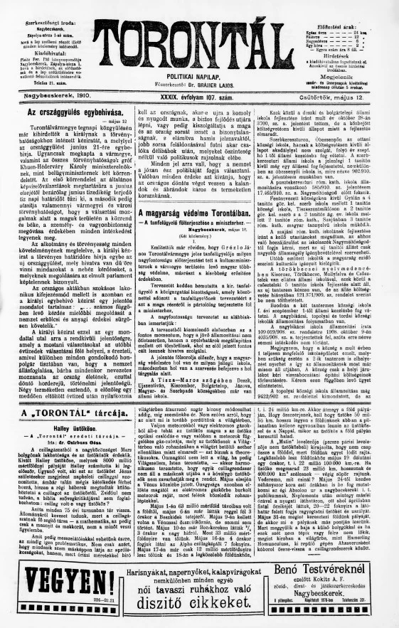 Torontál, 39. évf. 1910. május 12. 107. sz.