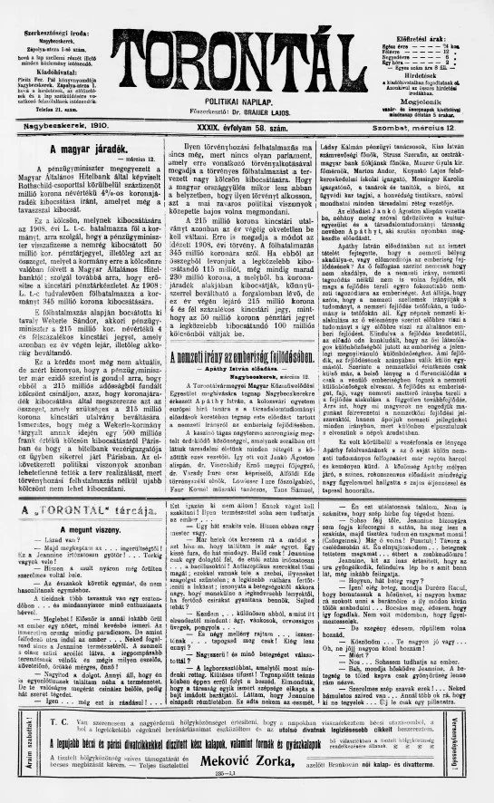 Torontál, 39. évf. 1910. március 12. 58. sz.
