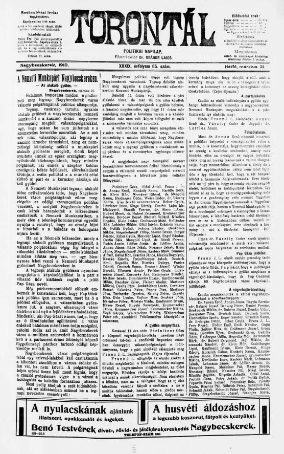Torontál, 39. évf. 1910. március 21. 65. sz.