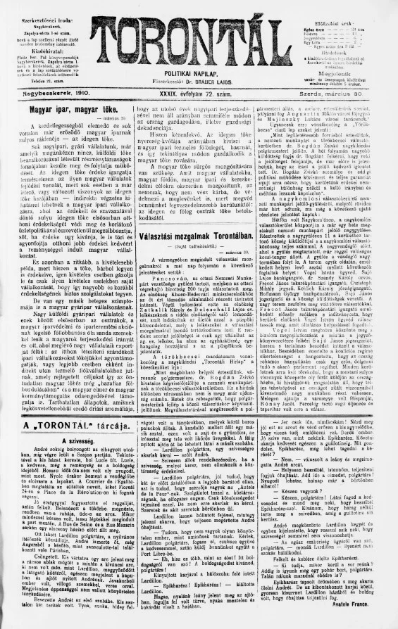 Torontál, 39. évf. 1910. március 30. 72. sz.