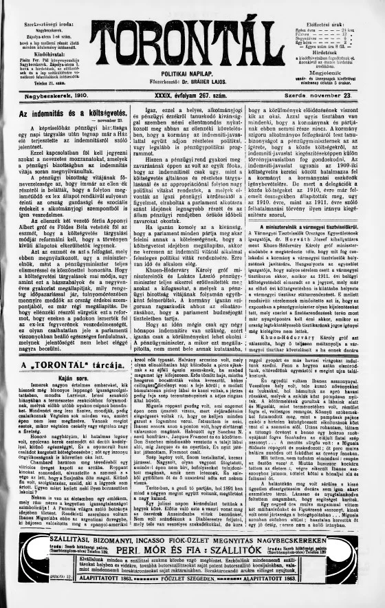 Torontál, 39. évf. 1910. november 23. 267. sz.