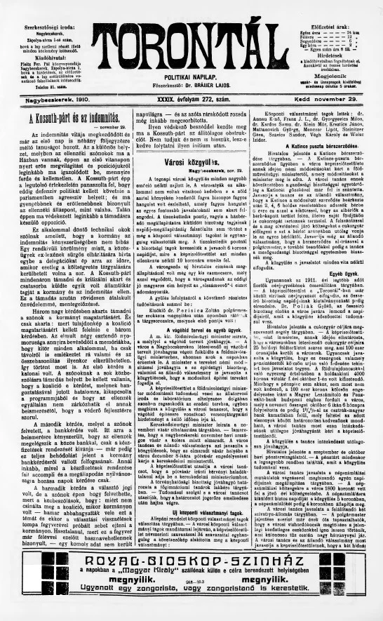 Torontál, 39. évf. 1910. november 29. 272. sz.