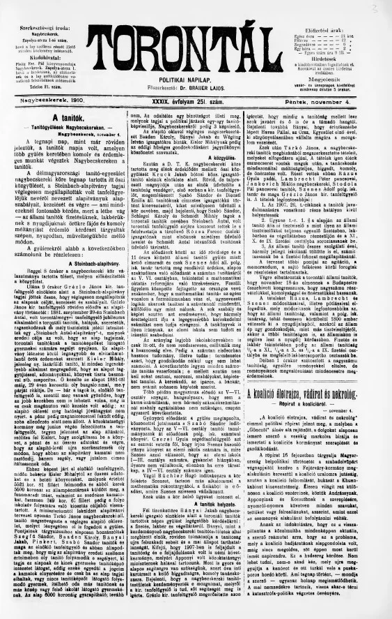 Torontál, 39. évf. 1910. november 4. 251. sz.