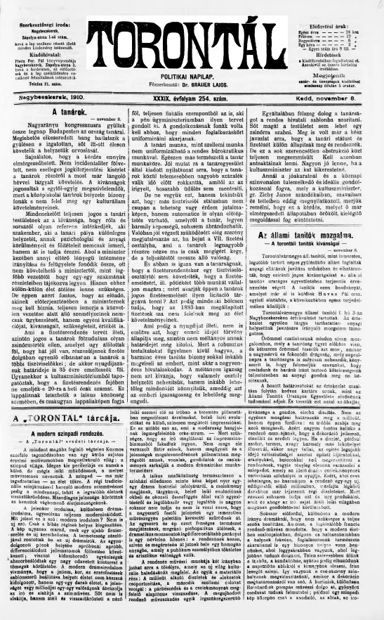 Torontál, 39. évf. 1910. november 8. 254. sz.
