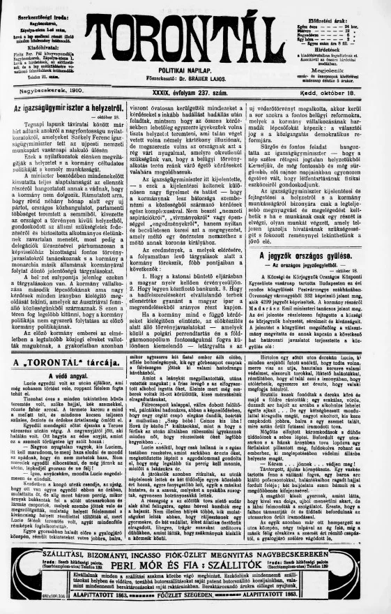 Torontál, 39. évf. 1910. október 18. 237. sz.