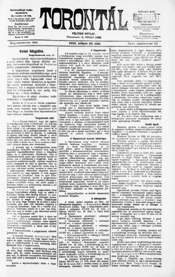 Torontál, 39. évf. 1910. szeptember 20. 213. sz.