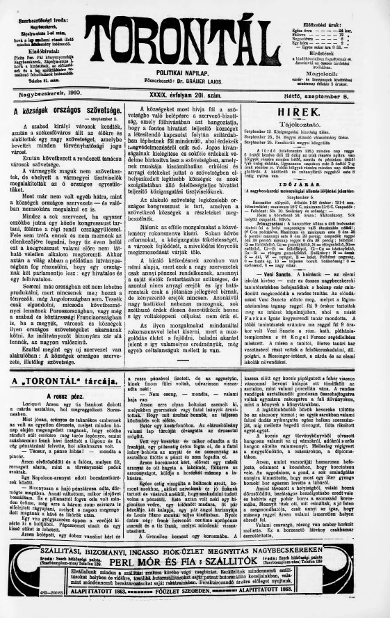 Torontál, 39. évf. 1910. szeptember 5. 201. sz.