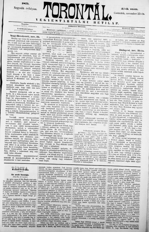Torontál, 4. évf. 1875. november 25. 47. sz.