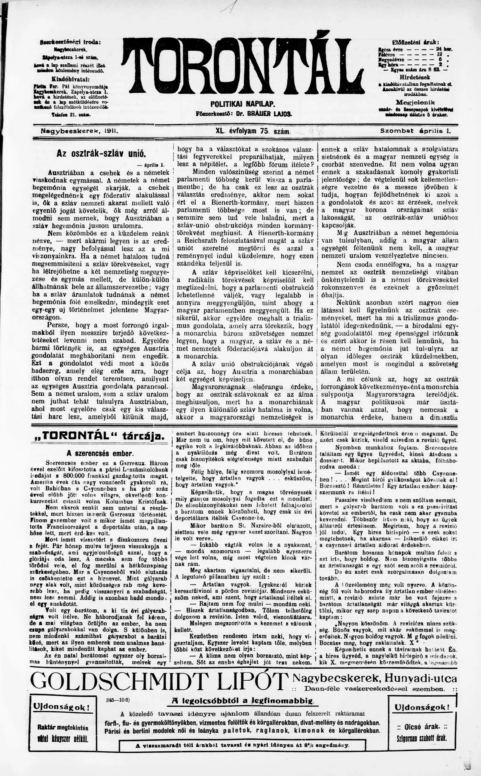 Torontál, 40. évf. 1911. április 1. 75. sz.