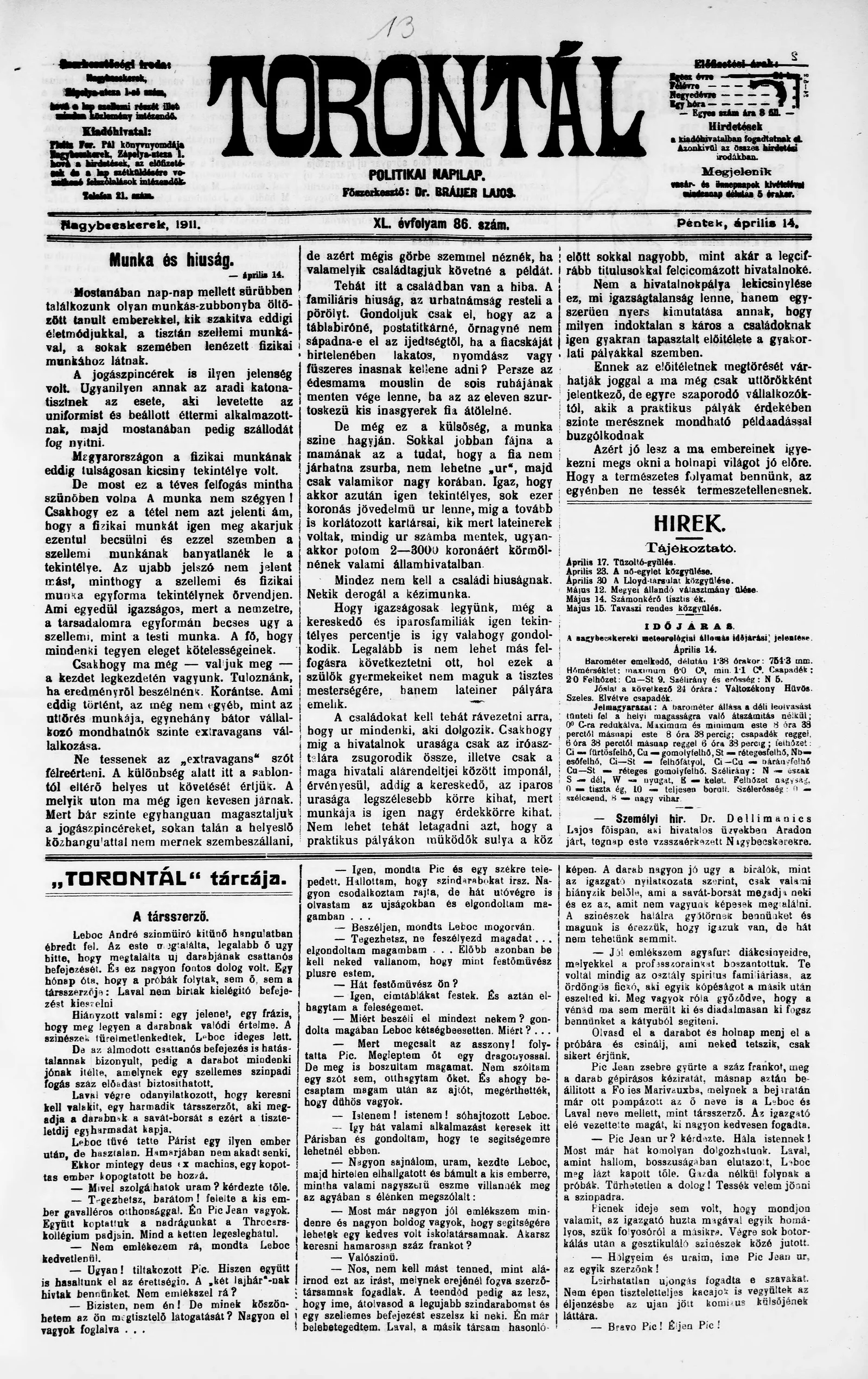 Torontál, 40. évf. 1911. április 14. 86. sz.