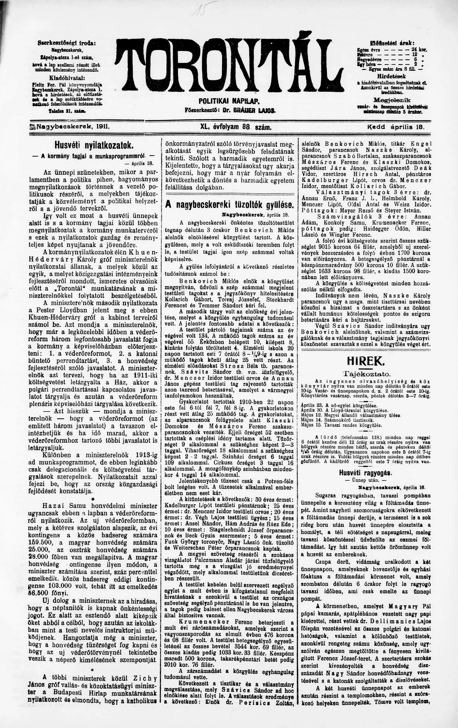 Torontál, 40. évf. 1911. április 18. 88. sz.