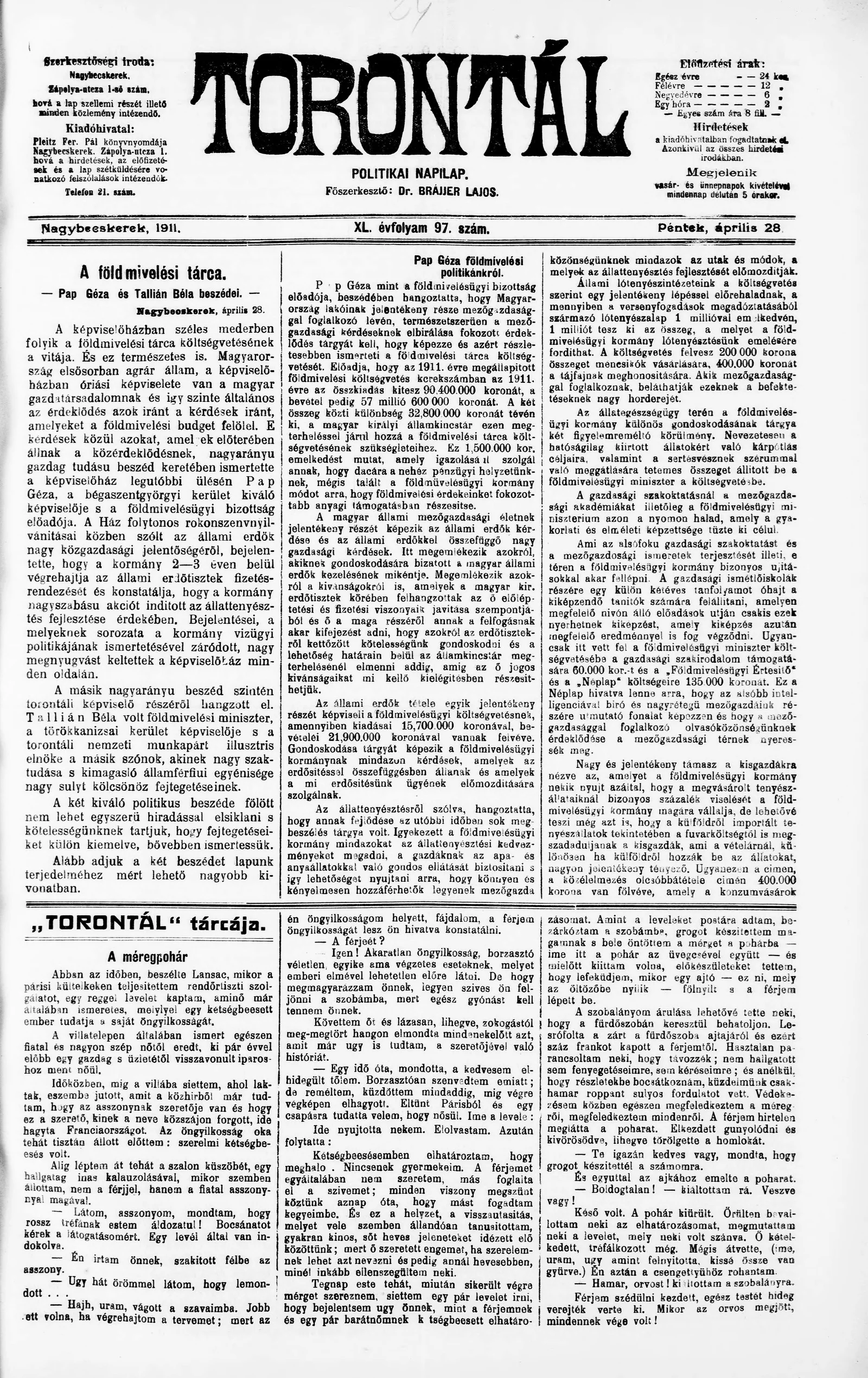 Torontál, 40. évf. 1911. április 28. 97. sz.