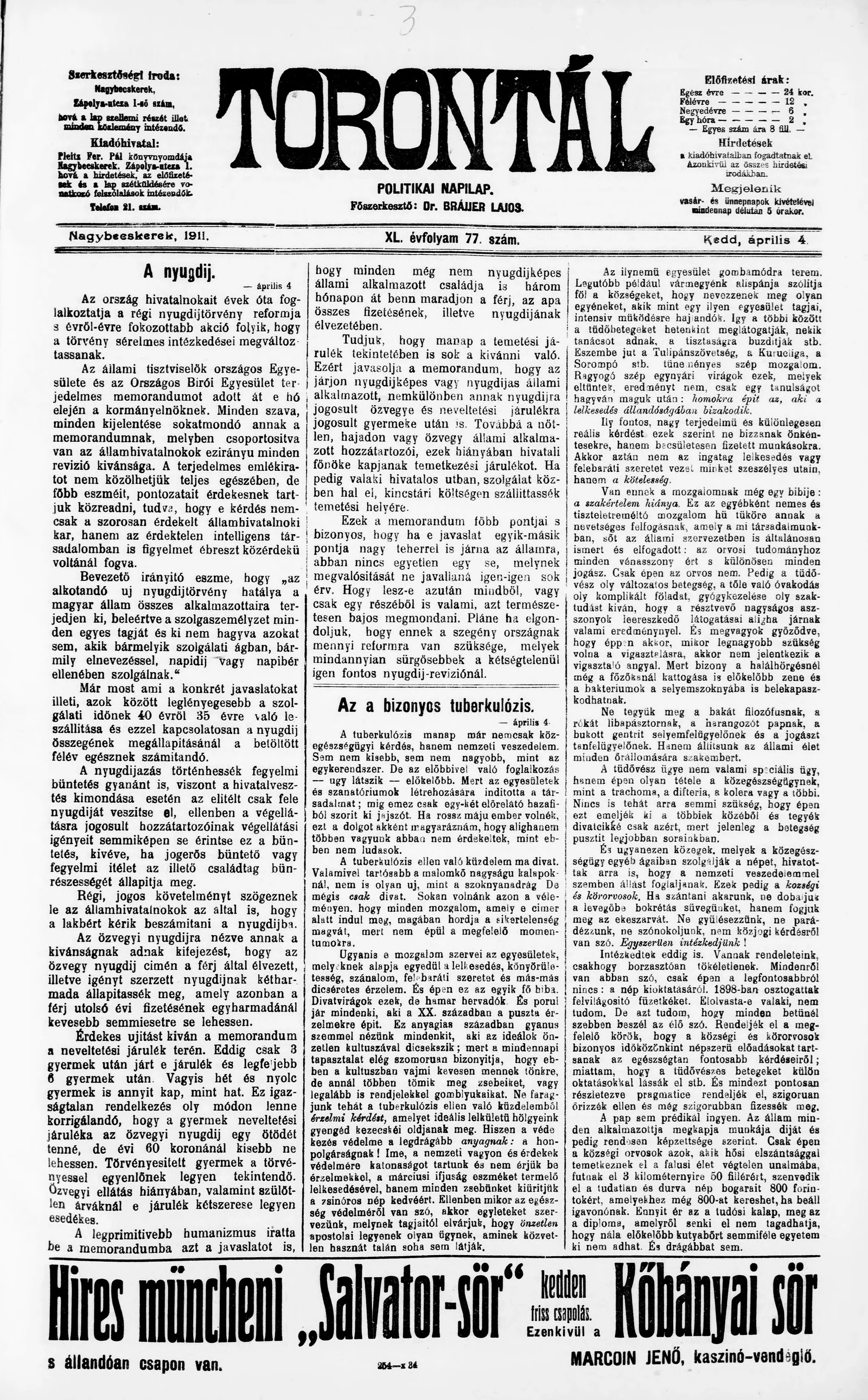 Torontál, 40. évf. 1911. április 4. 77. sz.