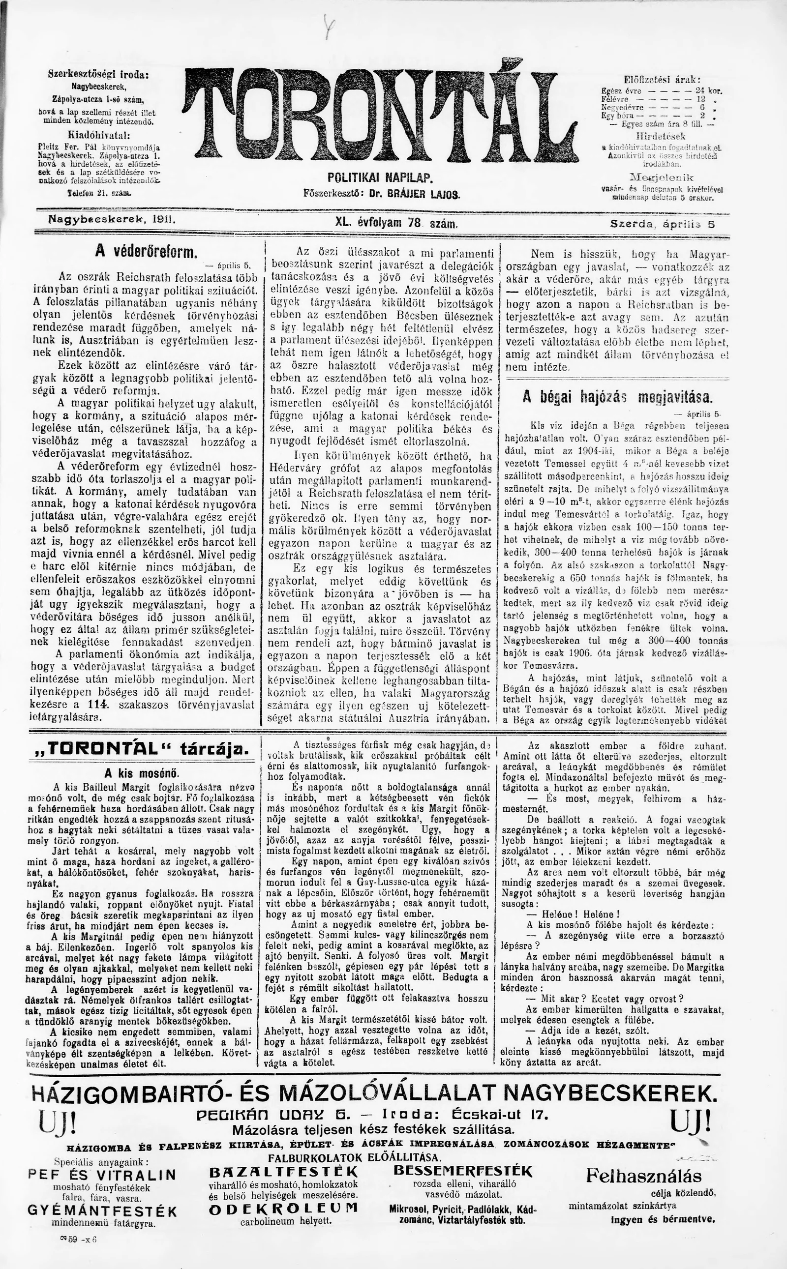 Torontál, 40. évf. 1911. április 5. 78. sz.