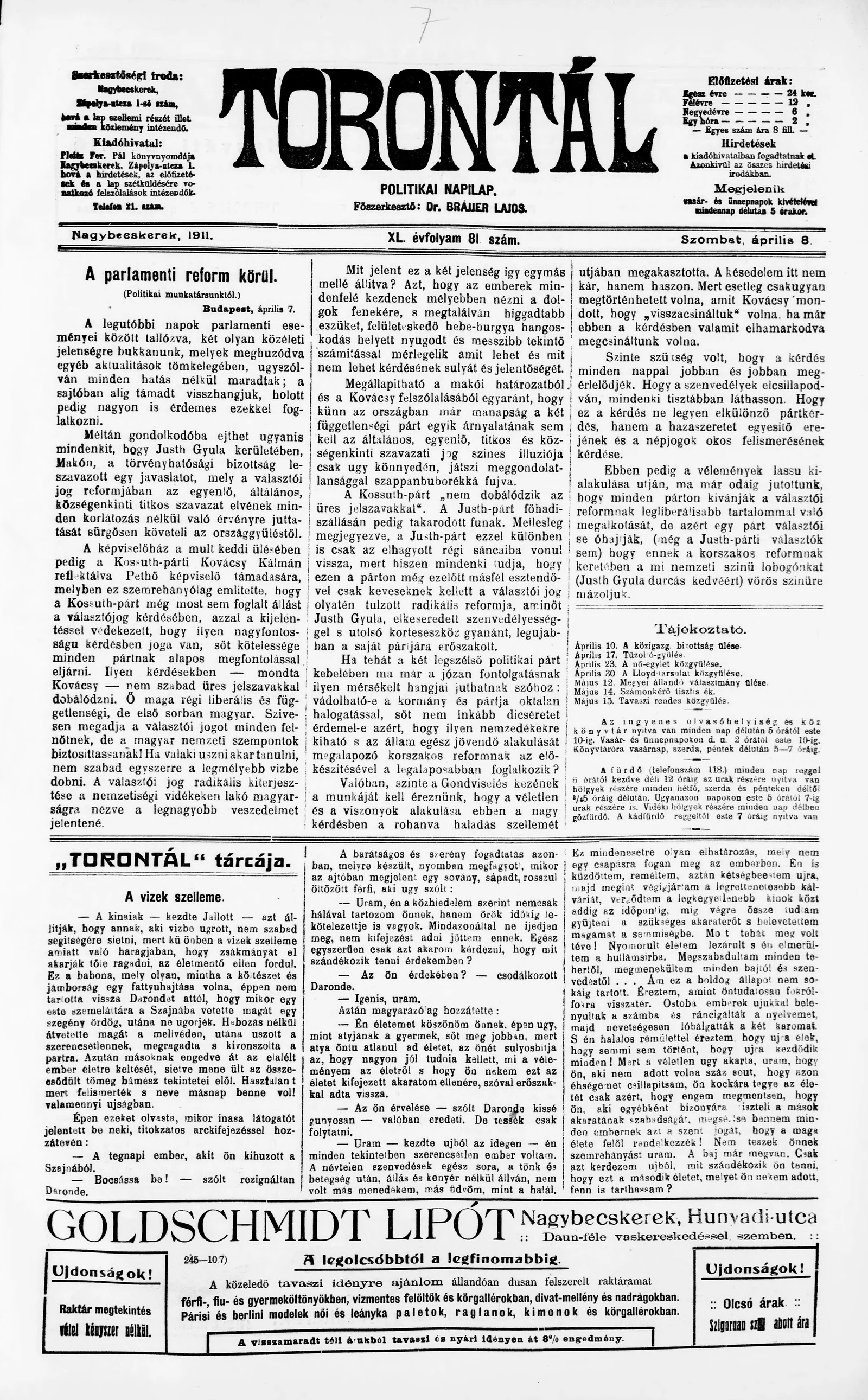 Torontál, 40. évf. 1911. április 8. 81. sz.