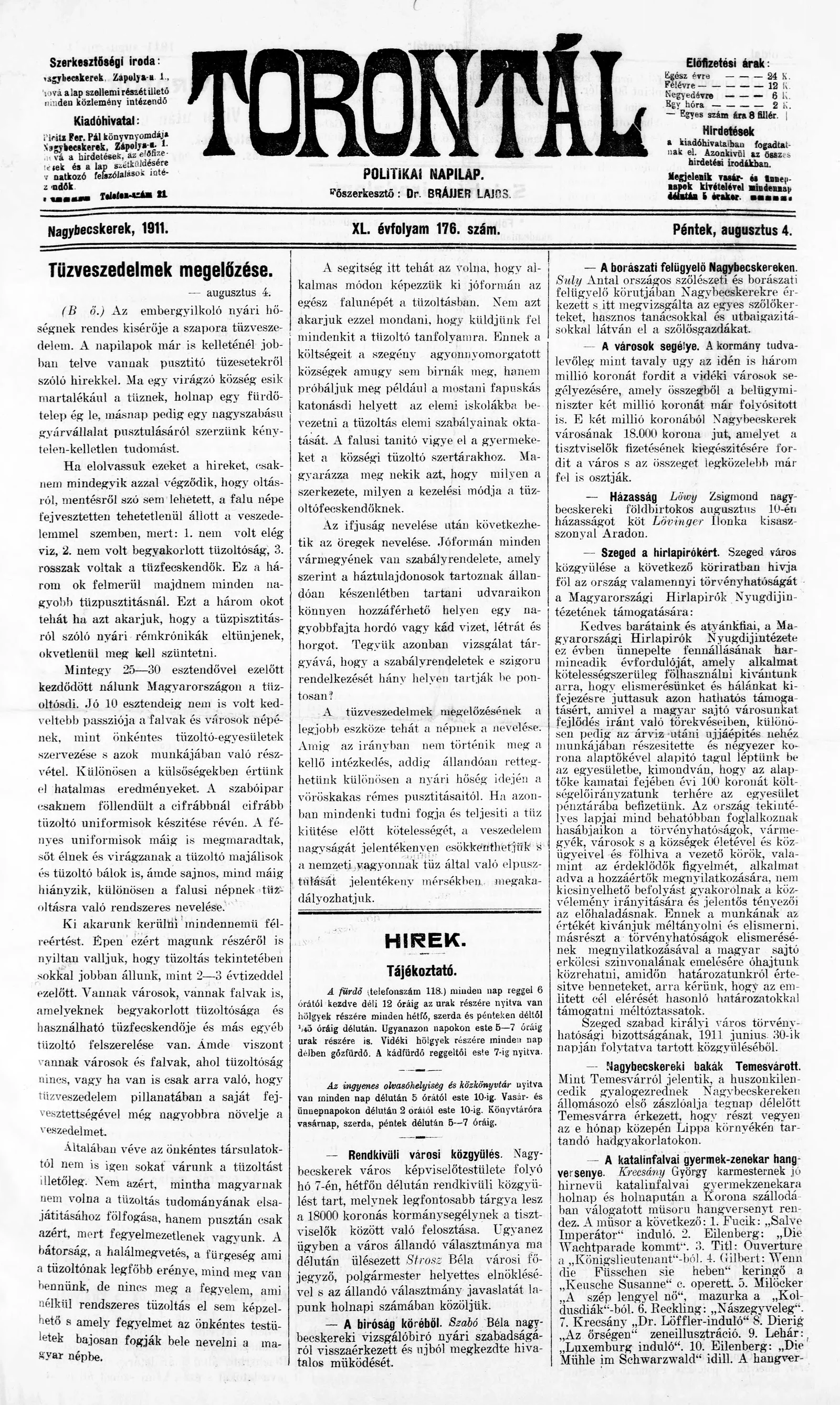 Torontál, 40. évf. 1911. augusztus 4. 176. sz.