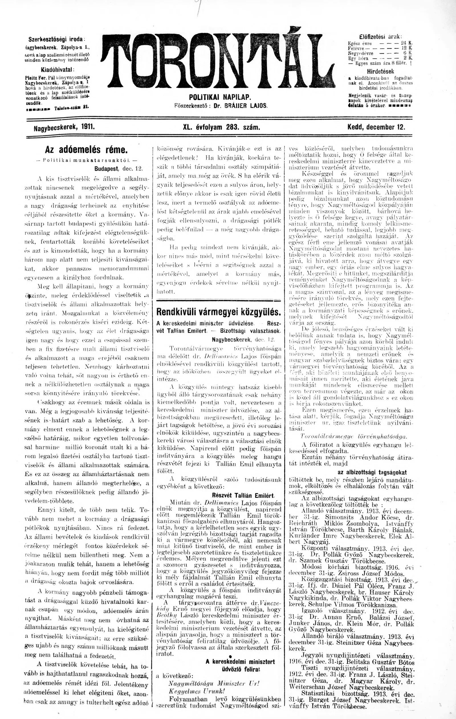 Torontál, 40. évf. 1911. december 12. 283. sz.