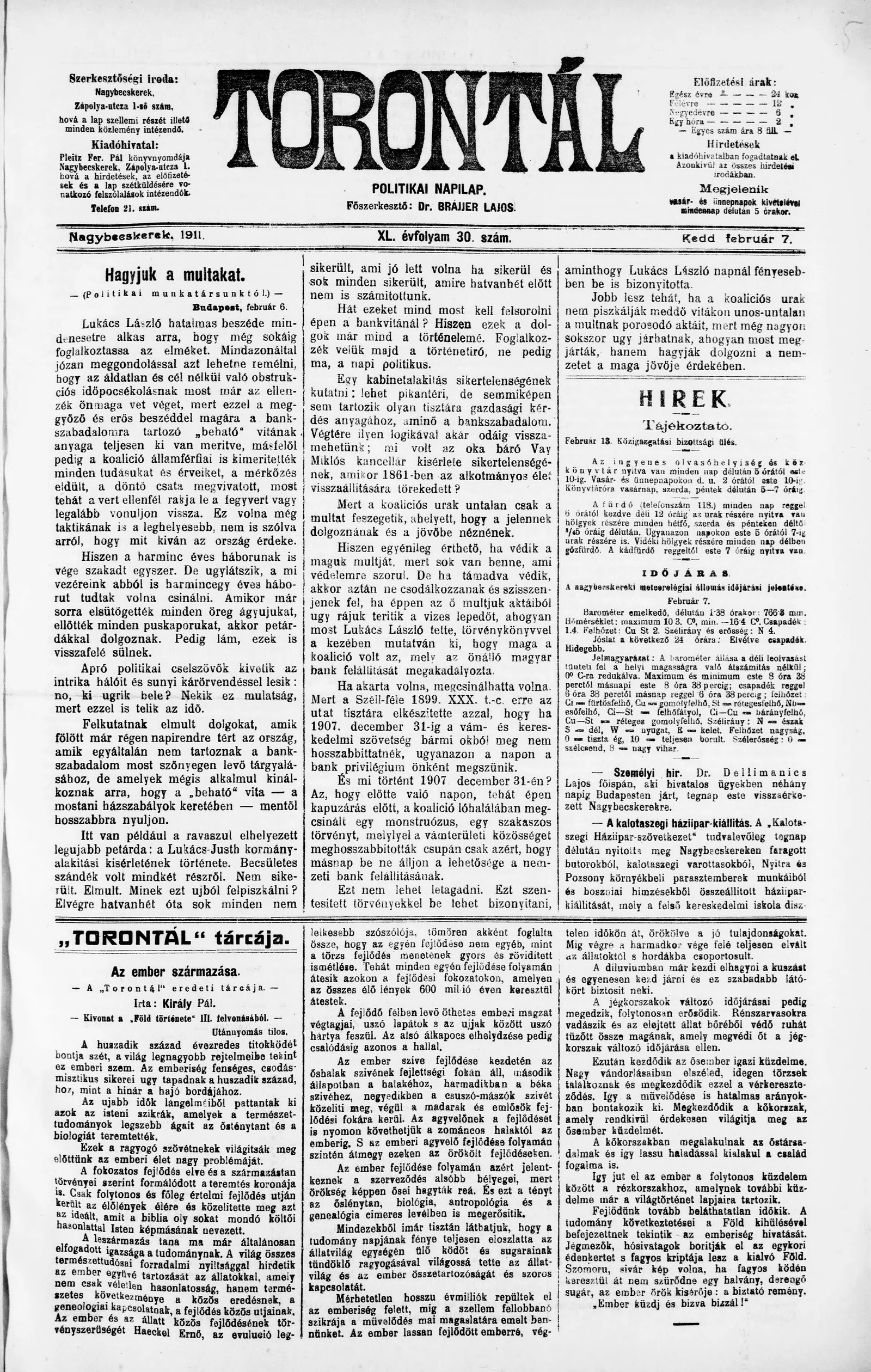 Torontál, 40. évf. 1911. február 7. 30. sz.