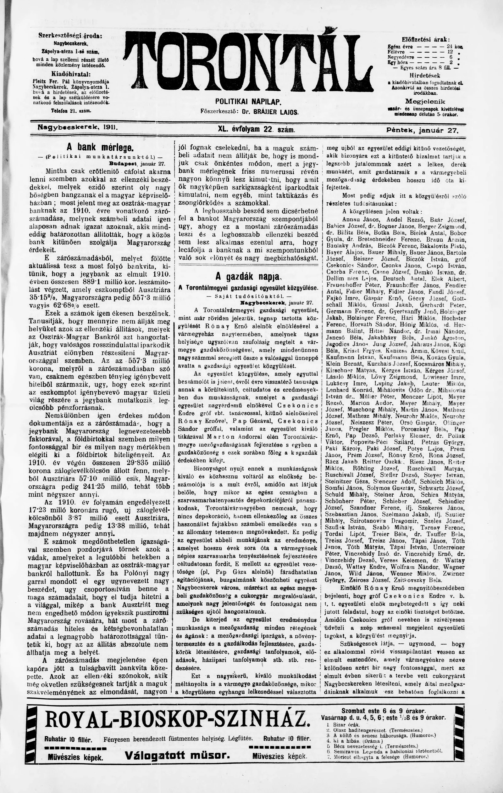 Torontál, 40. évf. 1911. január 27. 22. sz.