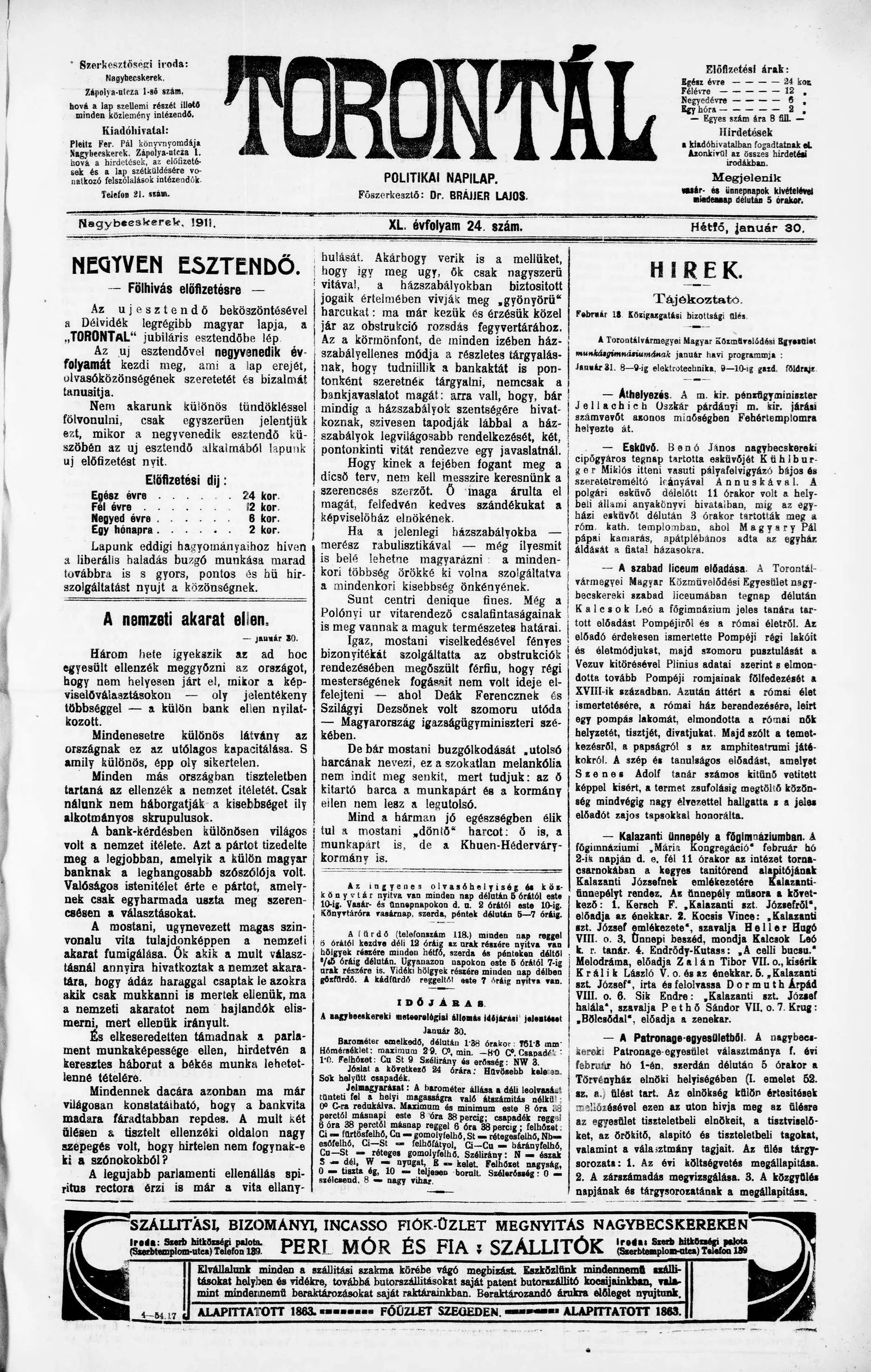 Torontál, 40. évf. 1911. január 30. 24. sz.