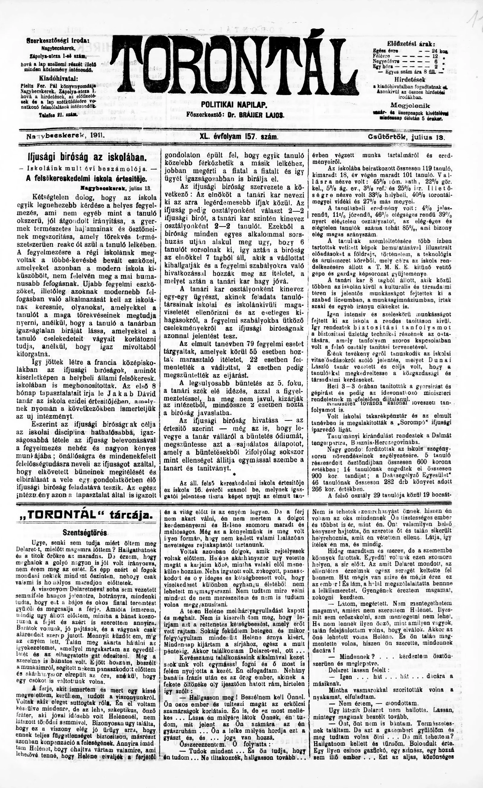 Torontál, 40. évf. 1911. július 13. 157. sz.