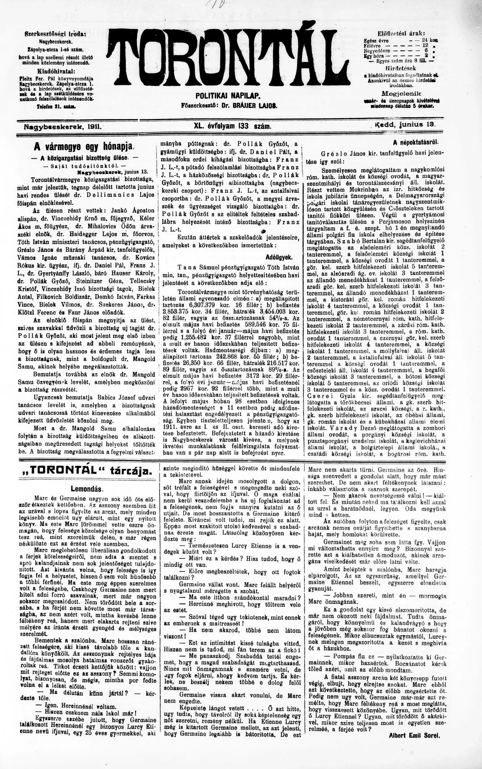 Torontál, 40. évf. 1911. június 13. 133. sz.