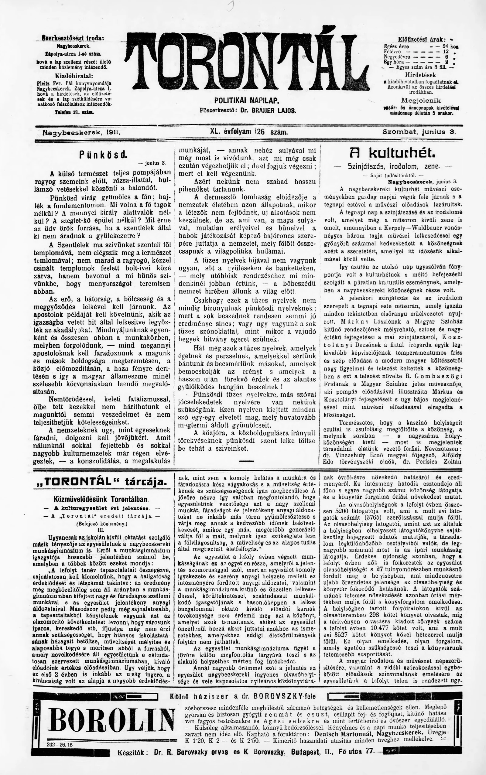 Torontál, 40. évf. 1911. június 3. 126. sz.