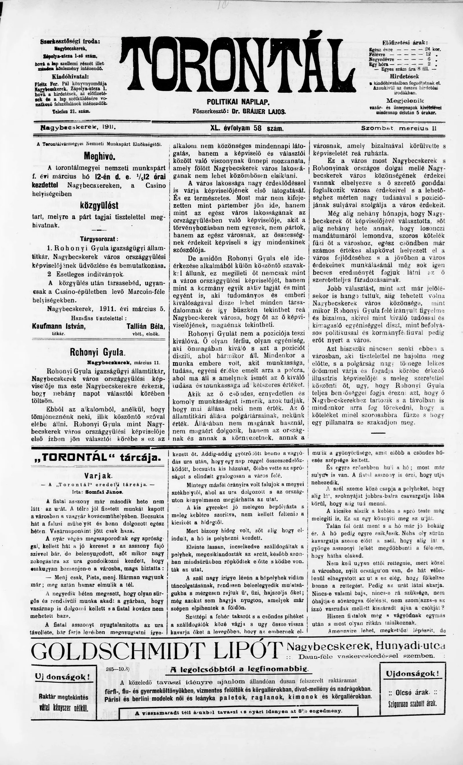 Torontál, 40. évf. 1911. március 11. 58. sz.