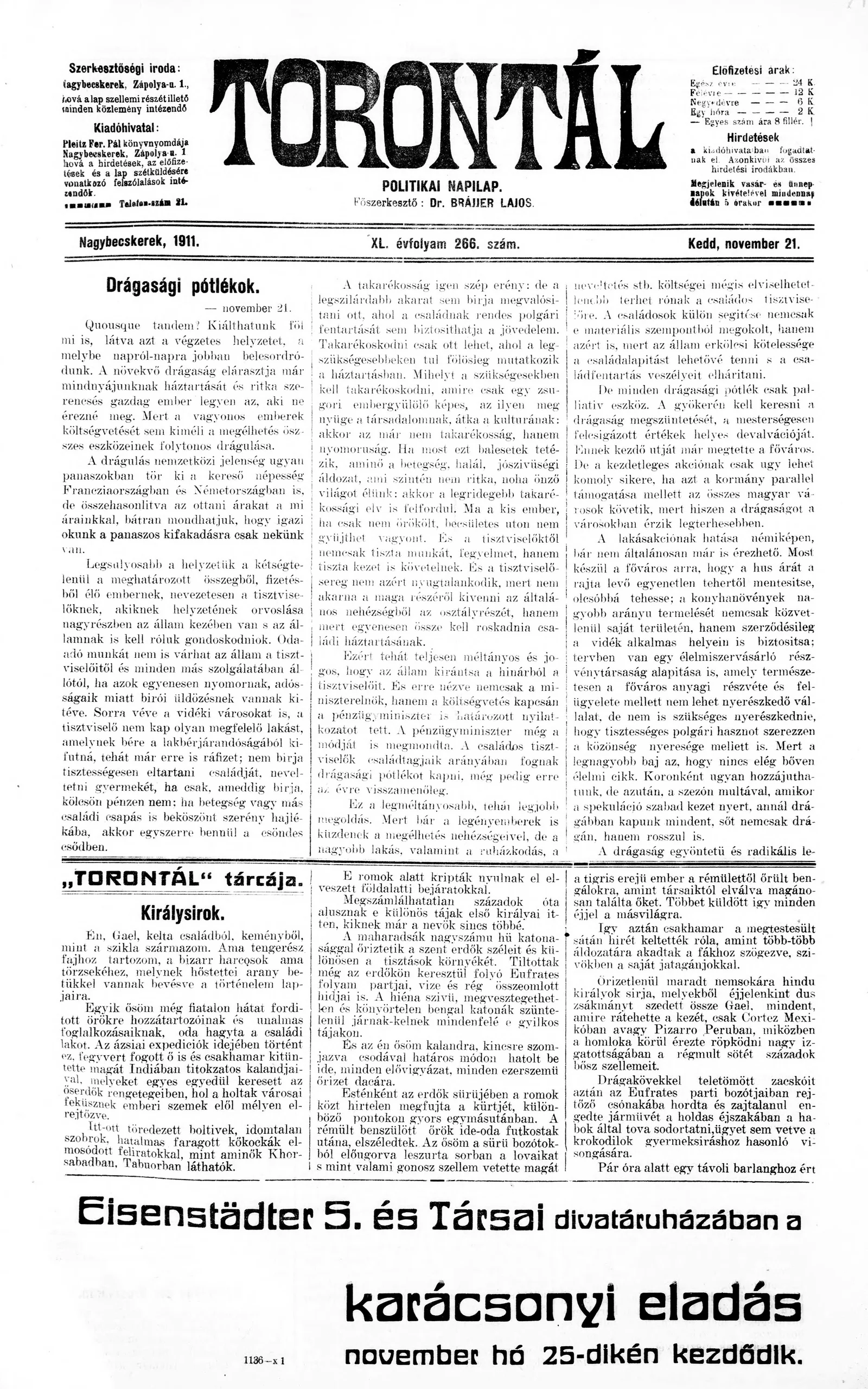 Torontál, 40. évf. 1911. november 21. 266. sz.
