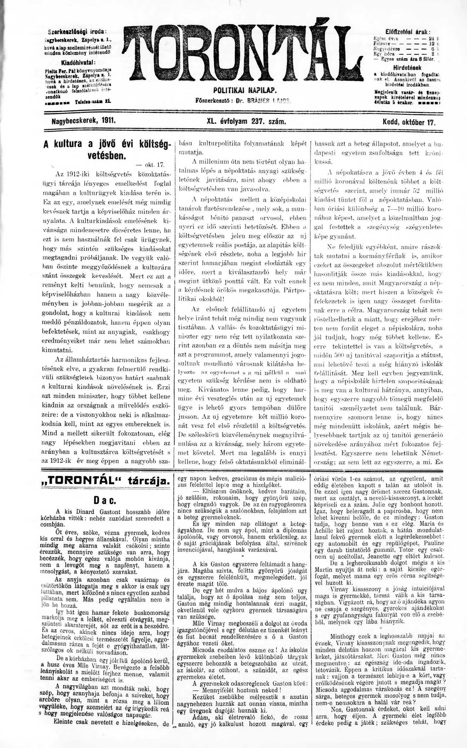 Torontál, 40. évf. 1911. október 17. 237. sz.