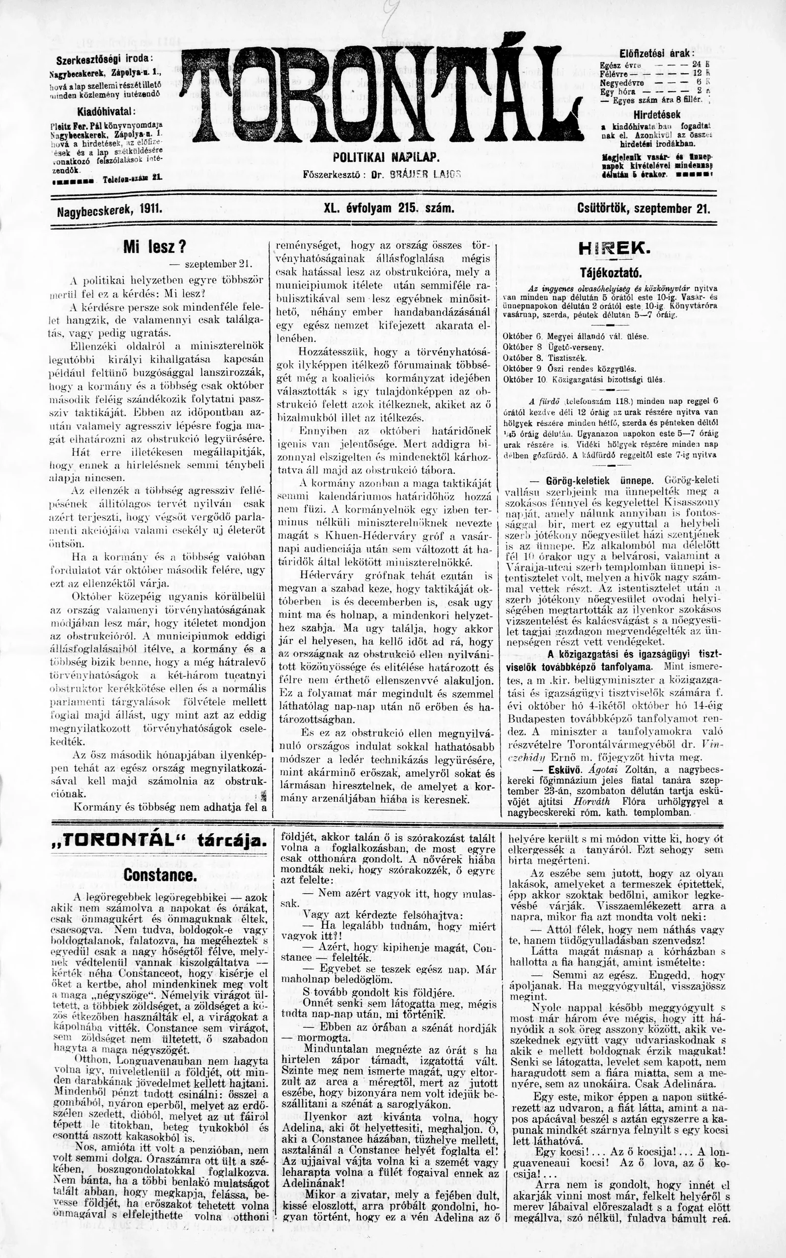 Torontál, 40. évf. 1911. szeptember 21. 215. sz.