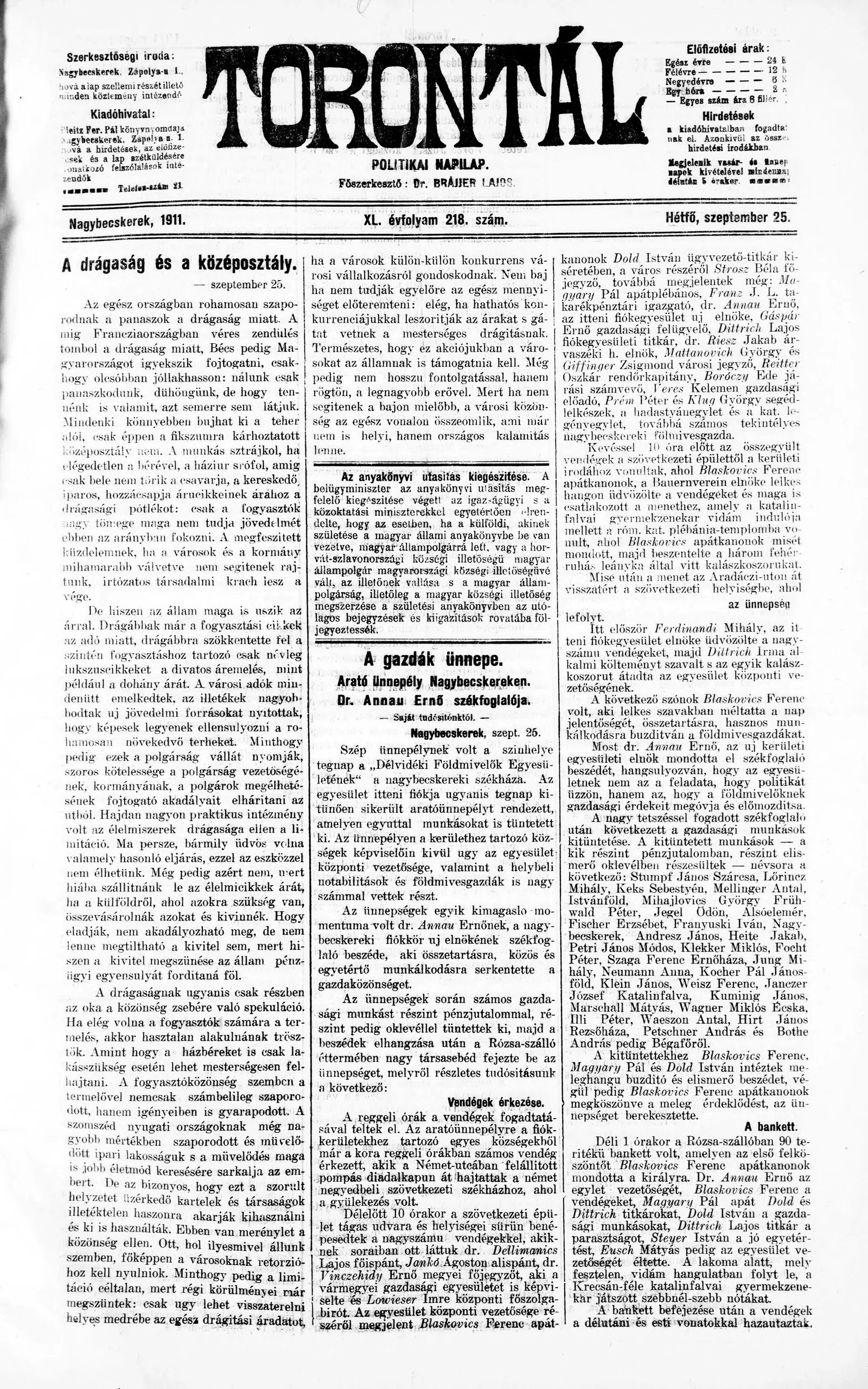 Torontál, 40. évf. 1911. szeptember 25. 218. sz.