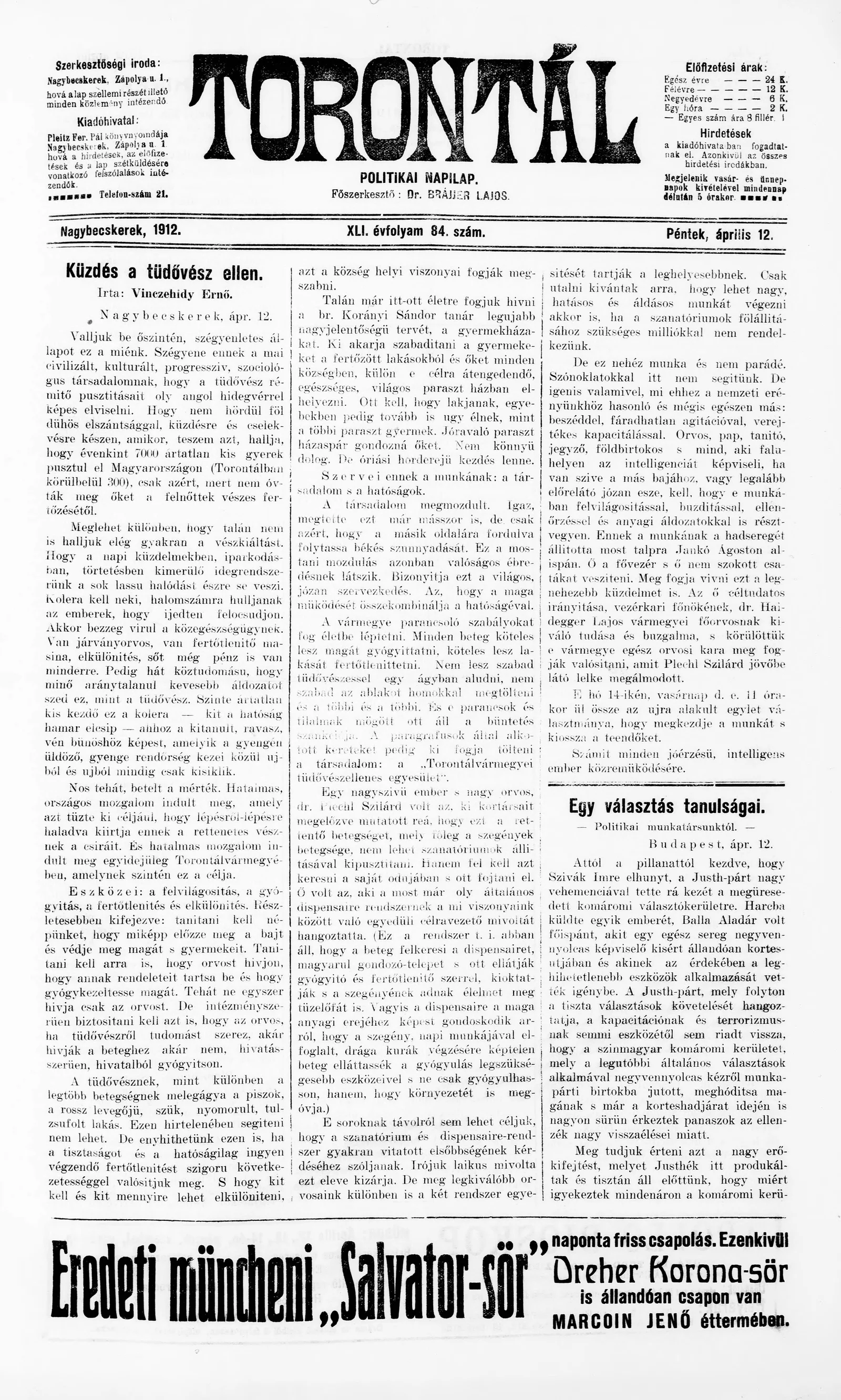 Torontál, 41. évf. 1912. április 12. 84. sz.