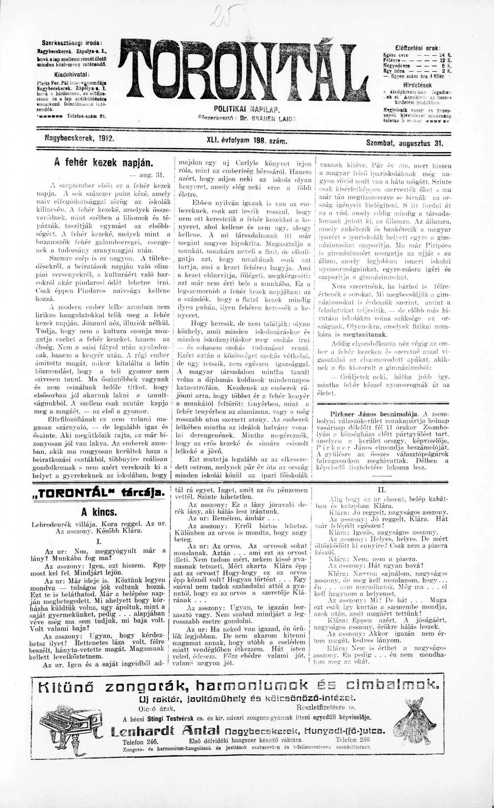 Torontál, 41. évf. 1912. augusztus 30. 198. sz.