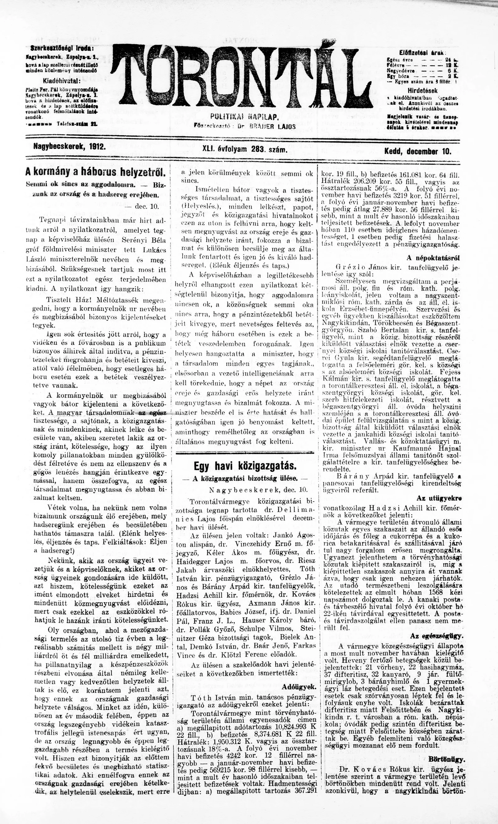 Torontál, 41. évf. 1912. december 10. 283. sz.