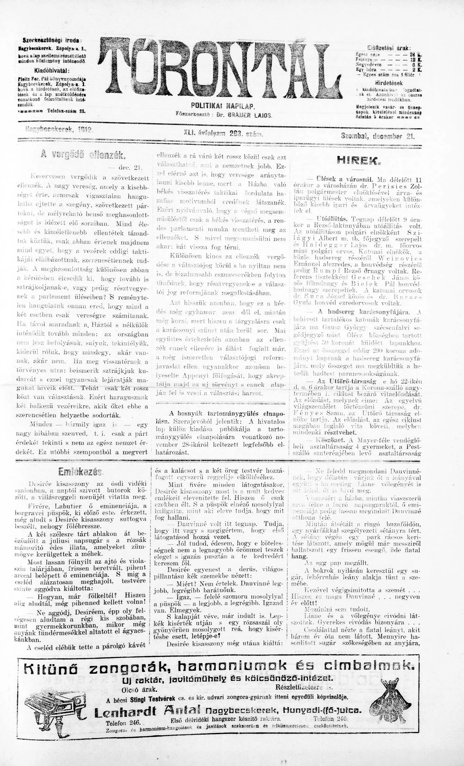 Torontál, 41. évf. 1912. december 21. 293. sz.