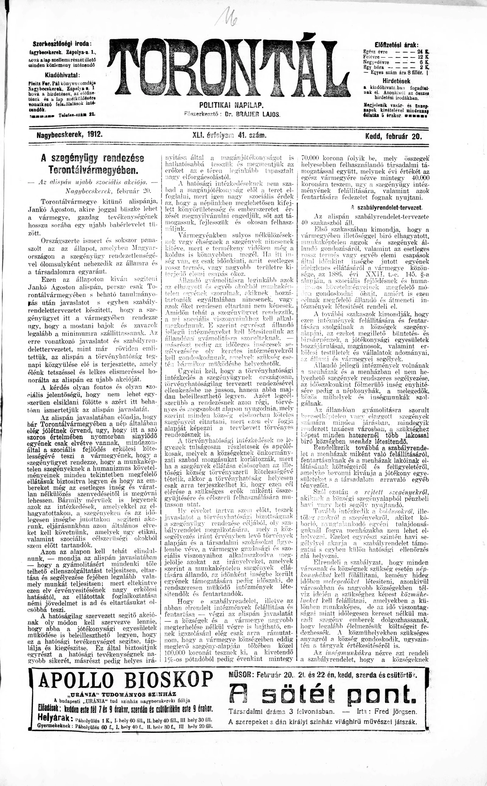 Torontál, 41. évf. 1912. február 20. 41. sz.