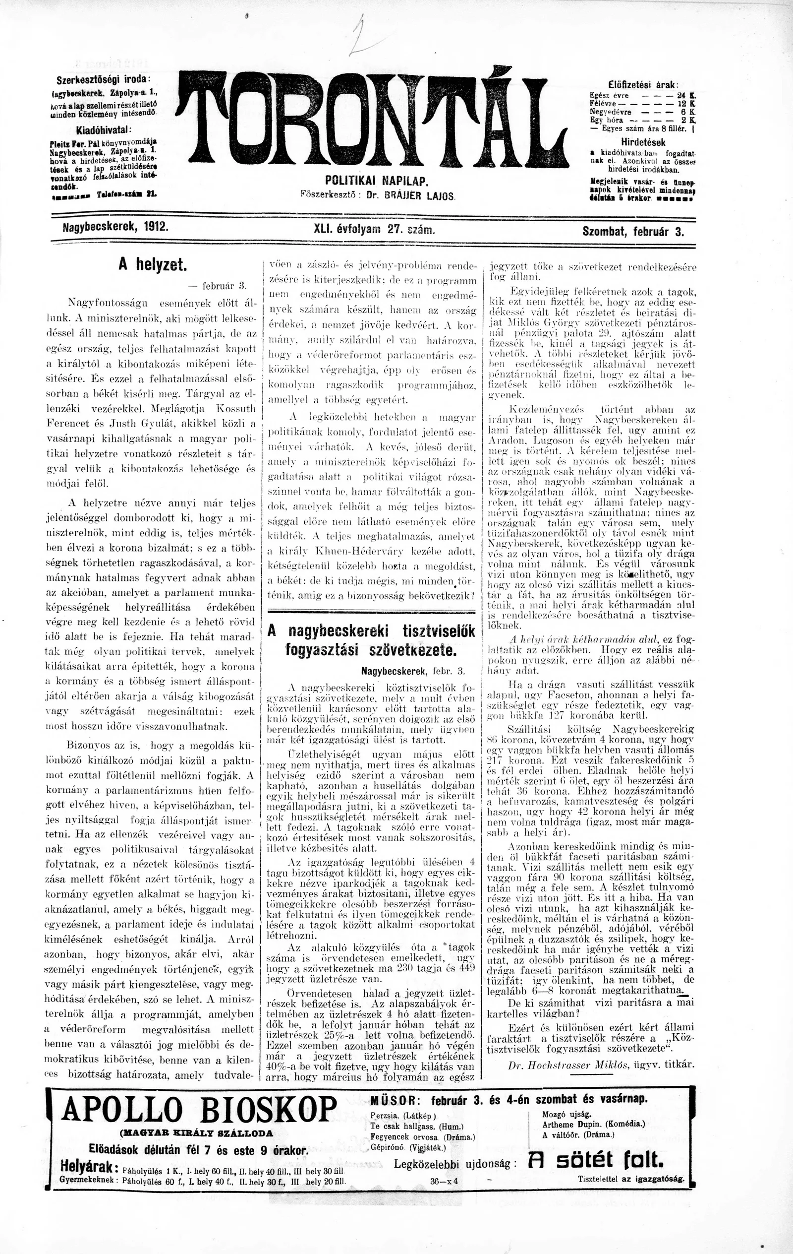 Torontál, 41. évf. 1912. február 3. 27. sz.