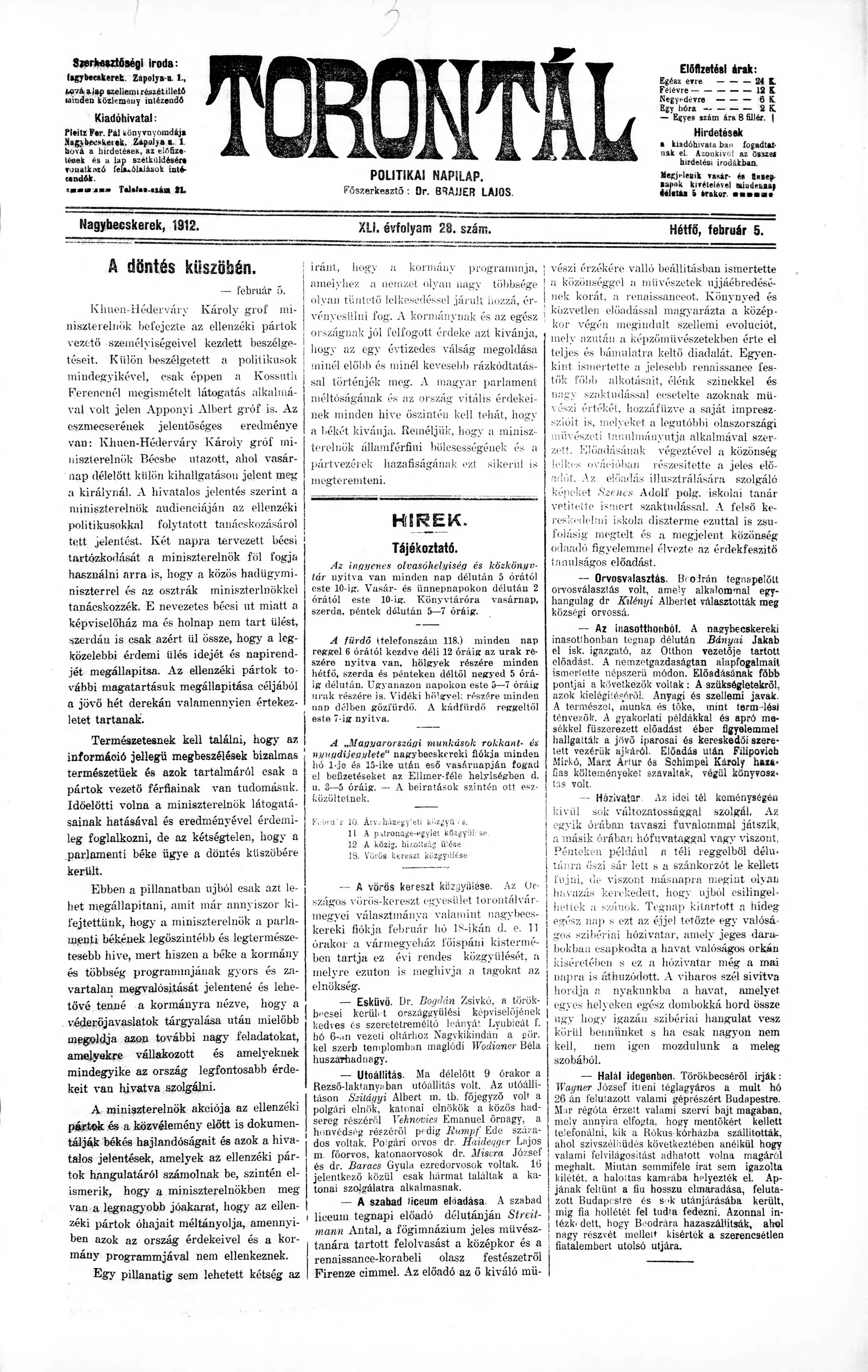 Torontál, 41. évf. 1912. február 5. 28. sz.