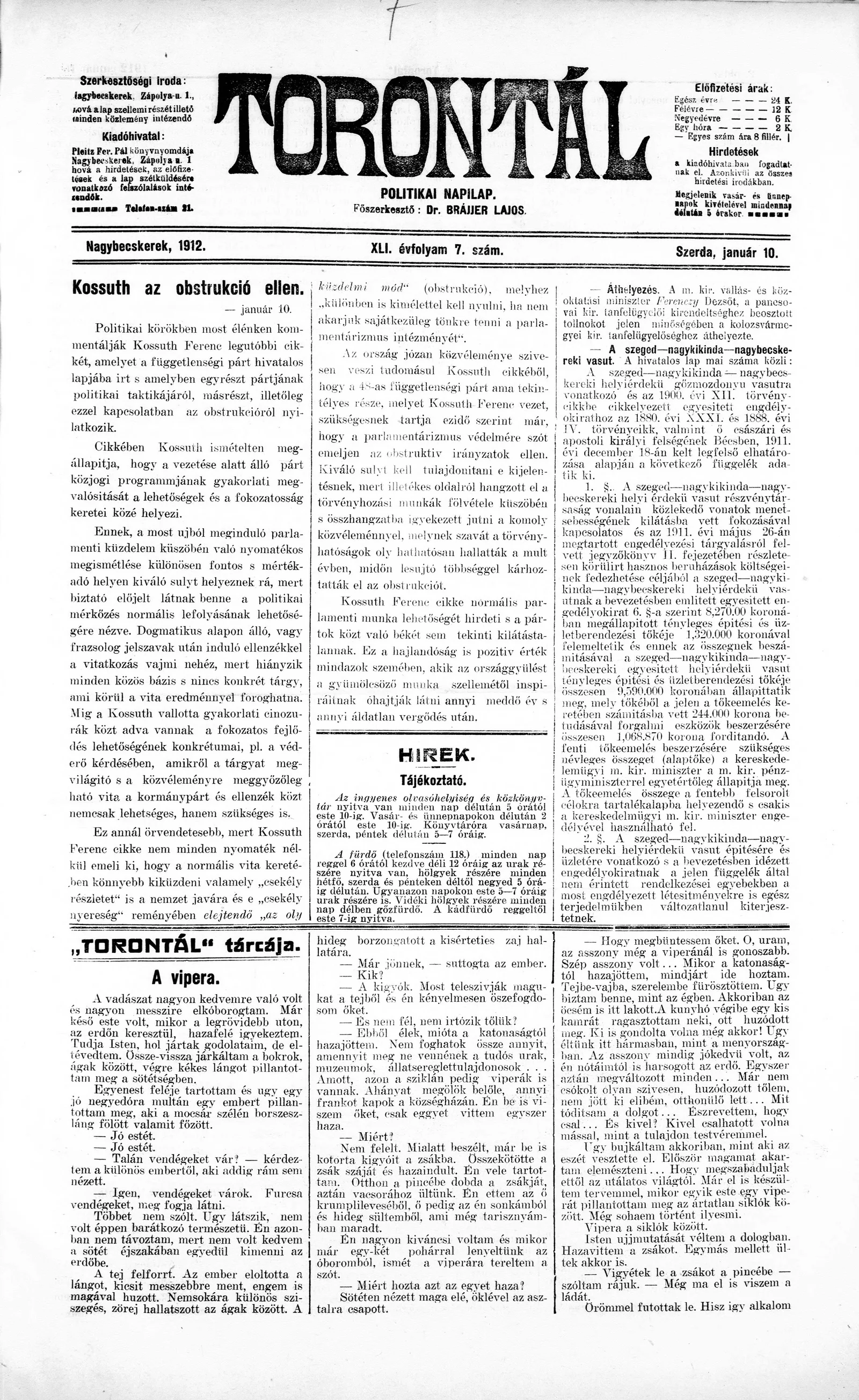 Torontál, 41. évf. 1912. január 10. 7. sz.