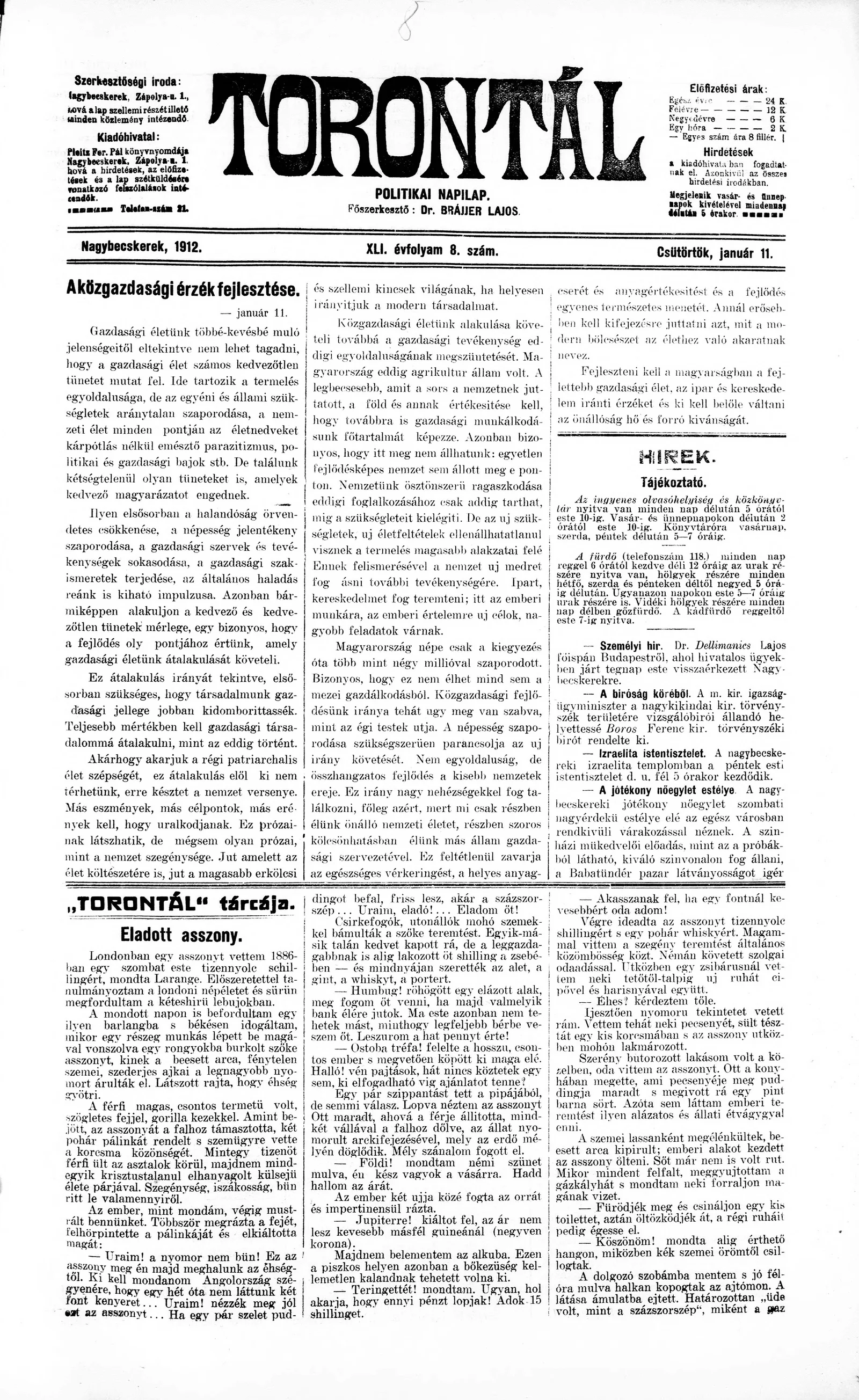 Torontál, 41. évf. 1912. január 11. 8. sz.