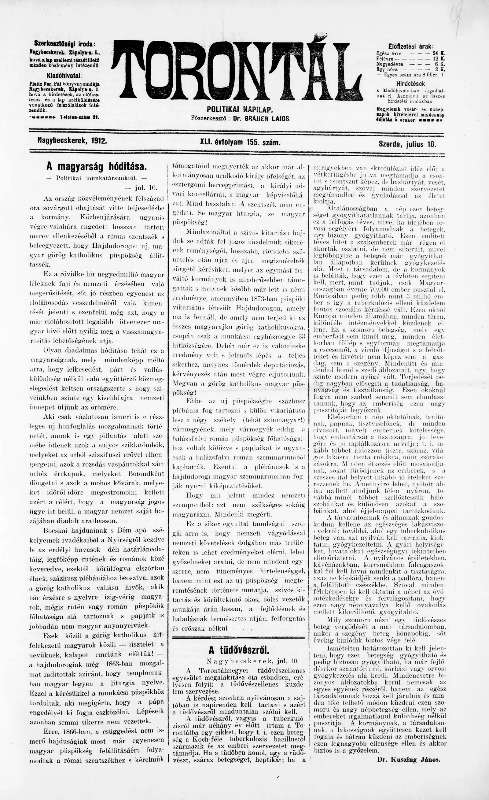 Torontál, 41. évf. 1912. július 10. 155. sz.