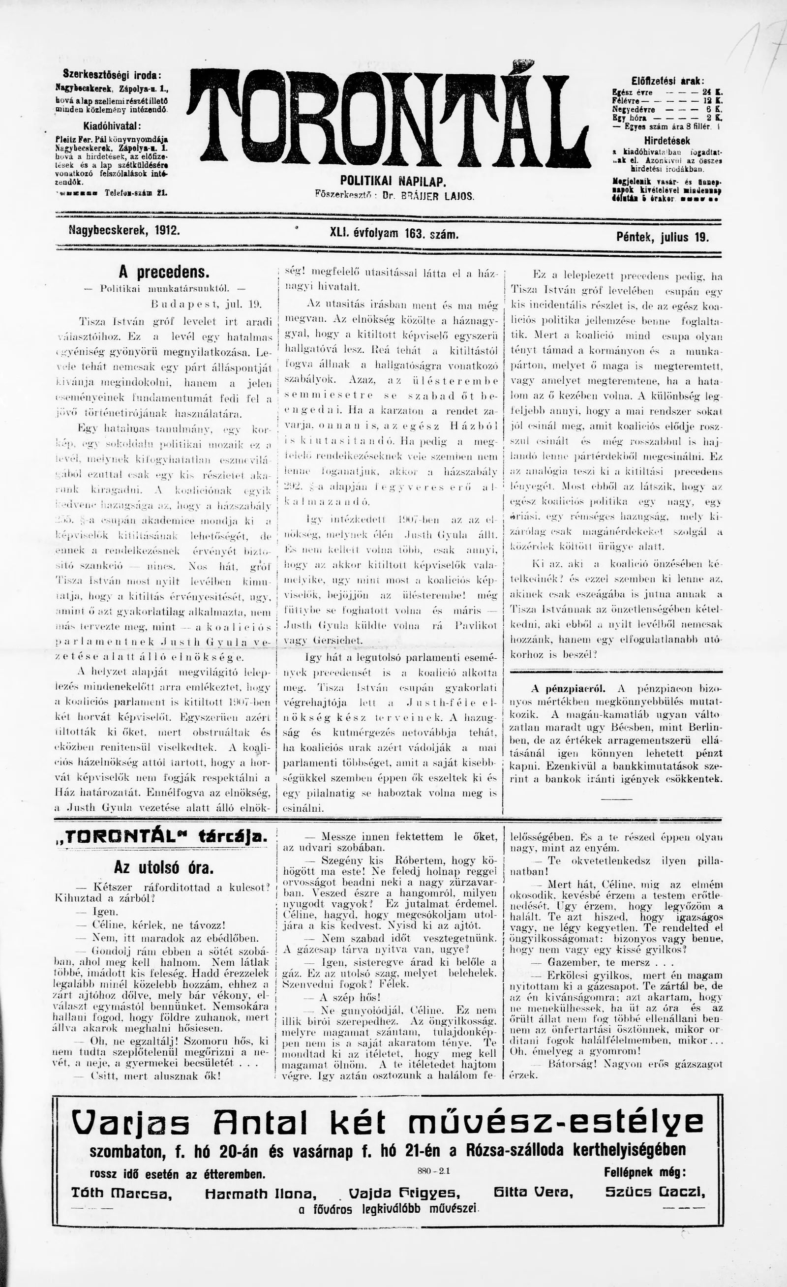 Torontál, 41. évf. 1912. július 19. 163. sz.