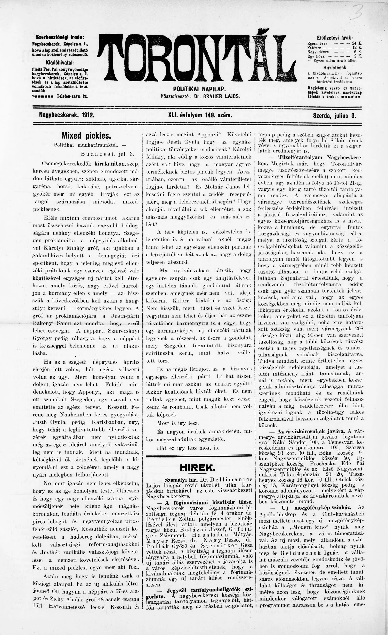 Torontál, 41. évf. 1912. július 3. 149. sz.