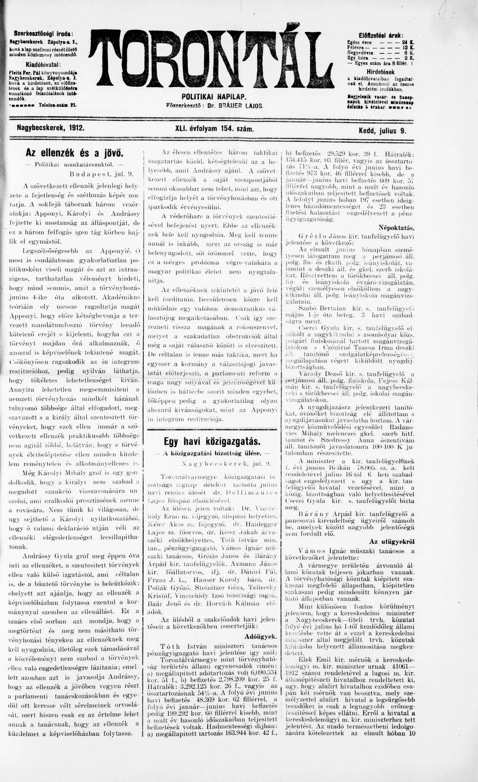 Torontál, 41. évf. 1912. július 9. 154. sz.