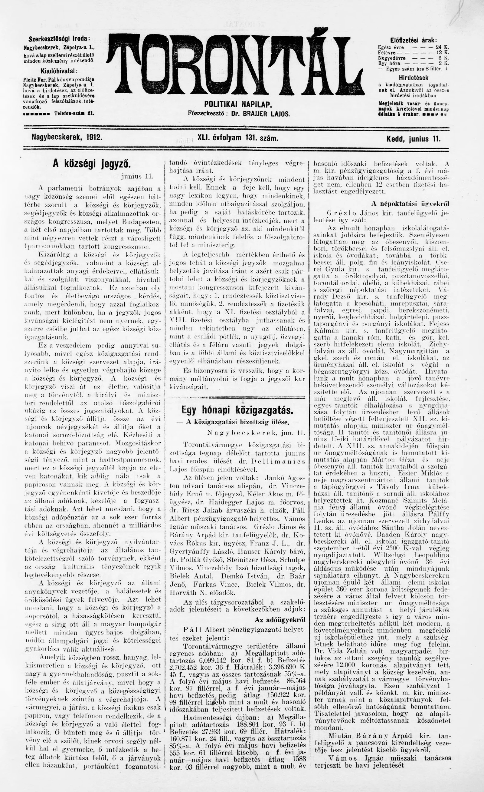 Torontál, 41. évf. 1912. június 11. 131. sz.