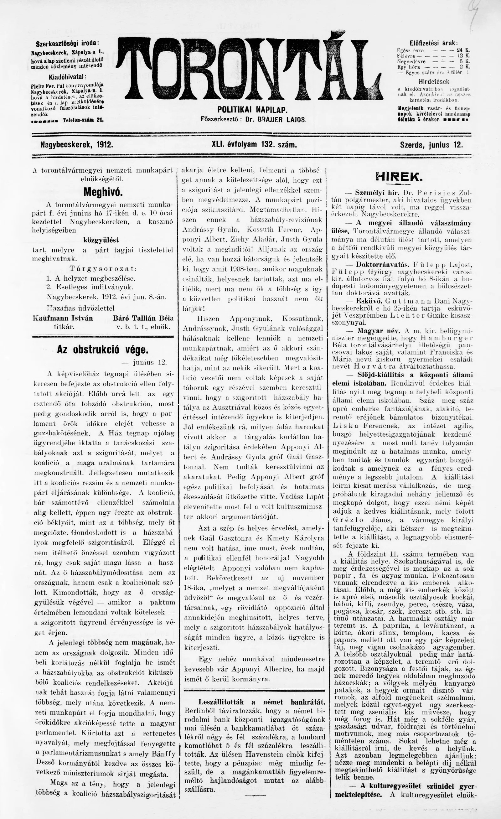 Torontál, 41. évf. 1912. június 12. 132. sz.