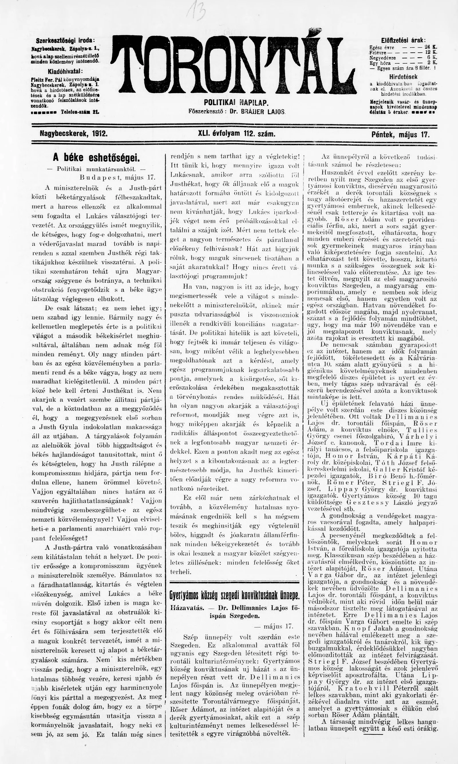 Torontál, 41. évf. 1912. május 17. 112. sz.