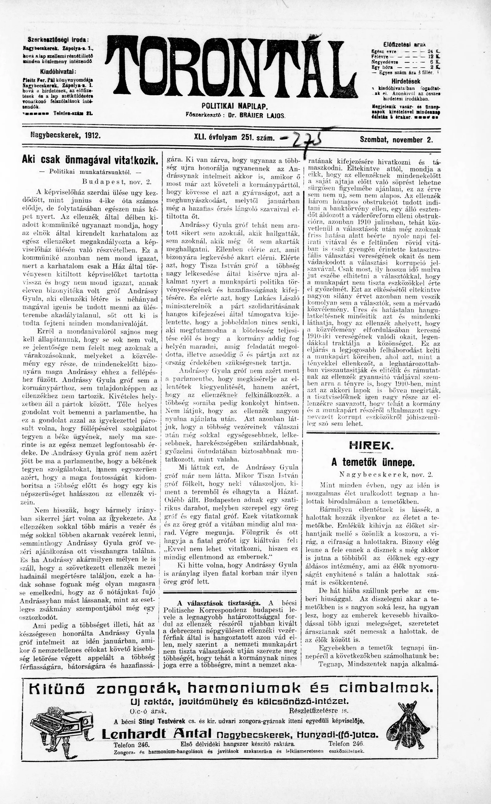 Torontál, 41. évf. 1912. november 2. 251. sz.